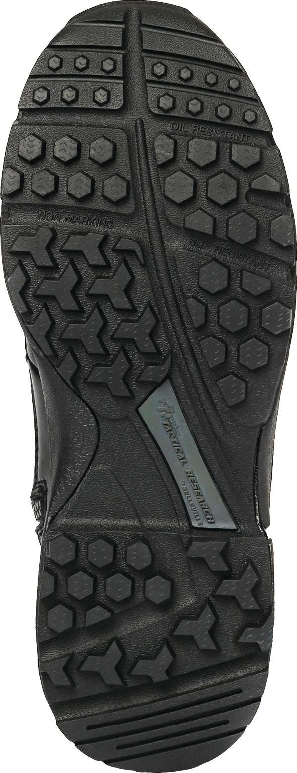 Exclusive long-wearing StreetNav™ rubber outsoles are non-marking, oil-resistant, and slip-resistant for reliable traction. These are unique cleat and lug outsoles. Highly-cushioned midsoles within the Tactical Research side-zip boots are shock-absorbent, too. A “Hot Fusion” exo-skeletal frame gives you structural support at a minimal weight for lightweight protection. Double-density molded and removable insoles make sure your feet have proper cushioning, and you can get into these waterproof safety toe boots with ease thanks to the side zipper entry points with molded security overlays.